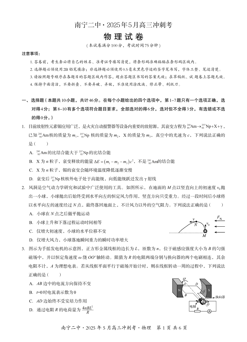 南宁二中2025年5月高三冲刺考 物理.pdf