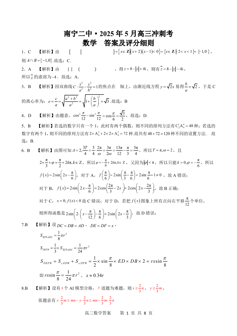 南宁二中2025年5月高三冲刺考 数学评分标准.pdf