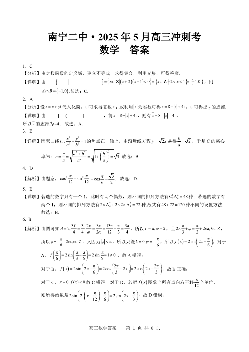 南宁二中2025年5月高三冲刺考 数学答案.pdf