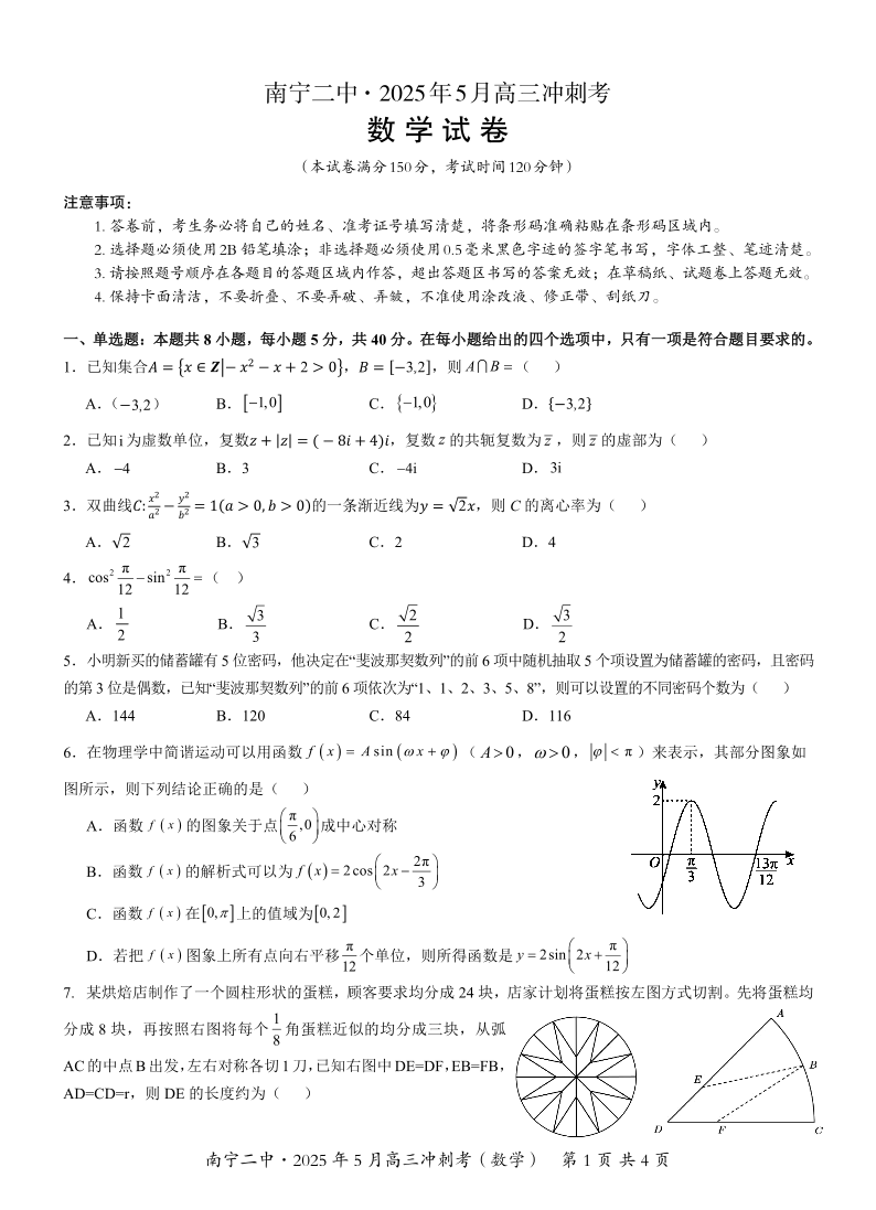 南宁二中2025年5月高三冲刺考 数学.pdf