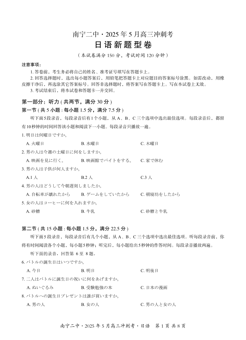 南宁二中2025年5月高三冲刺考 日语.pdf