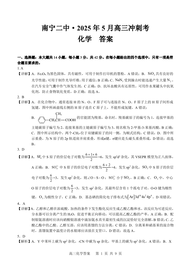 南宁二中2025年5月高三冲刺考 化学答案.pdf