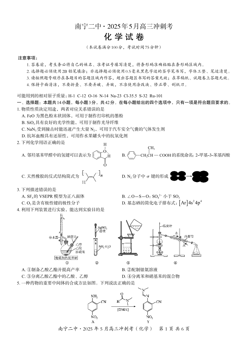 南宁二中2025年5月高三冲刺考 化学.pdf