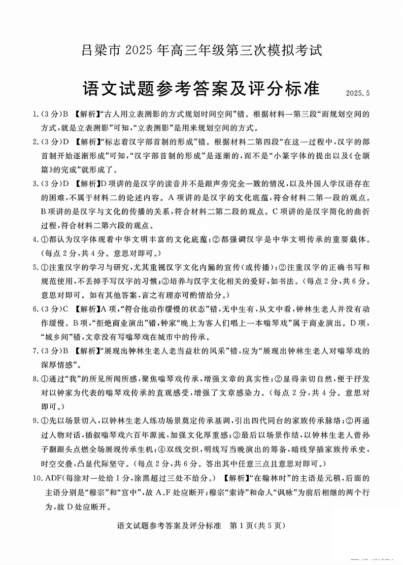 2025年吕梁高考三模 语文答案.pdf