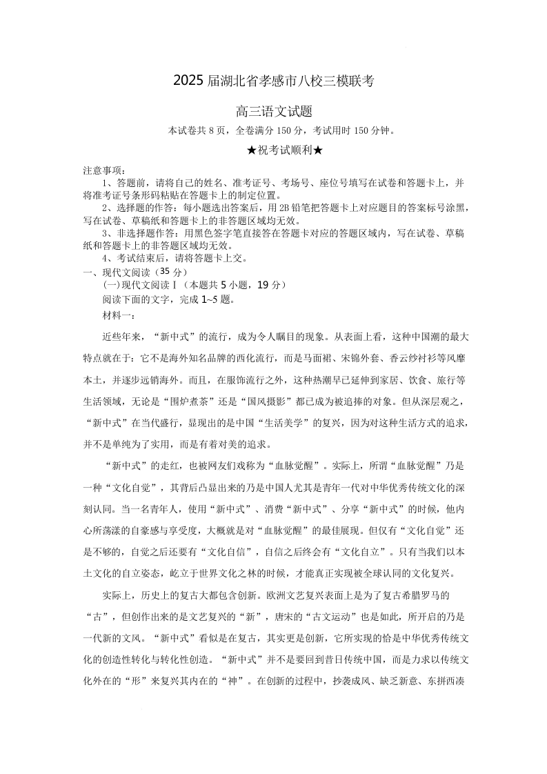 湖北省孝感市八校2025届高三下学期三模联考 语文试题解析板.docx