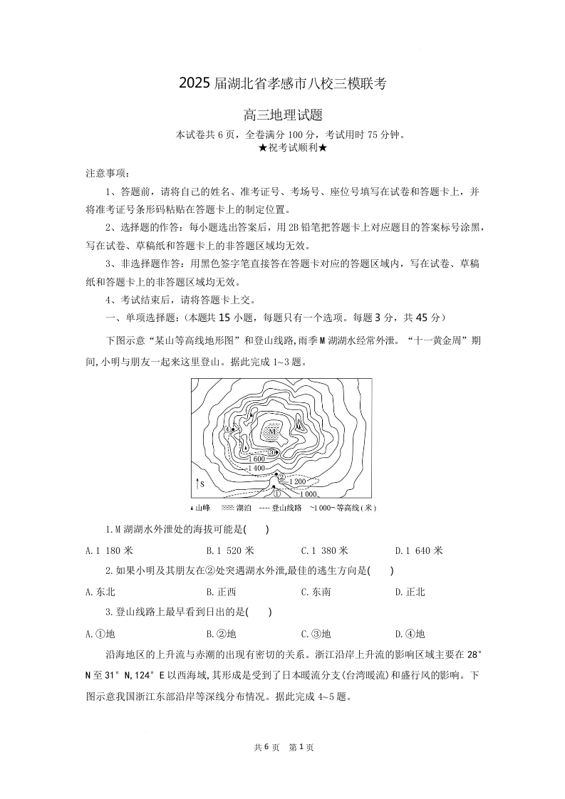 湖北省孝感市八校2025届高三下学期三模联考 地理.docx