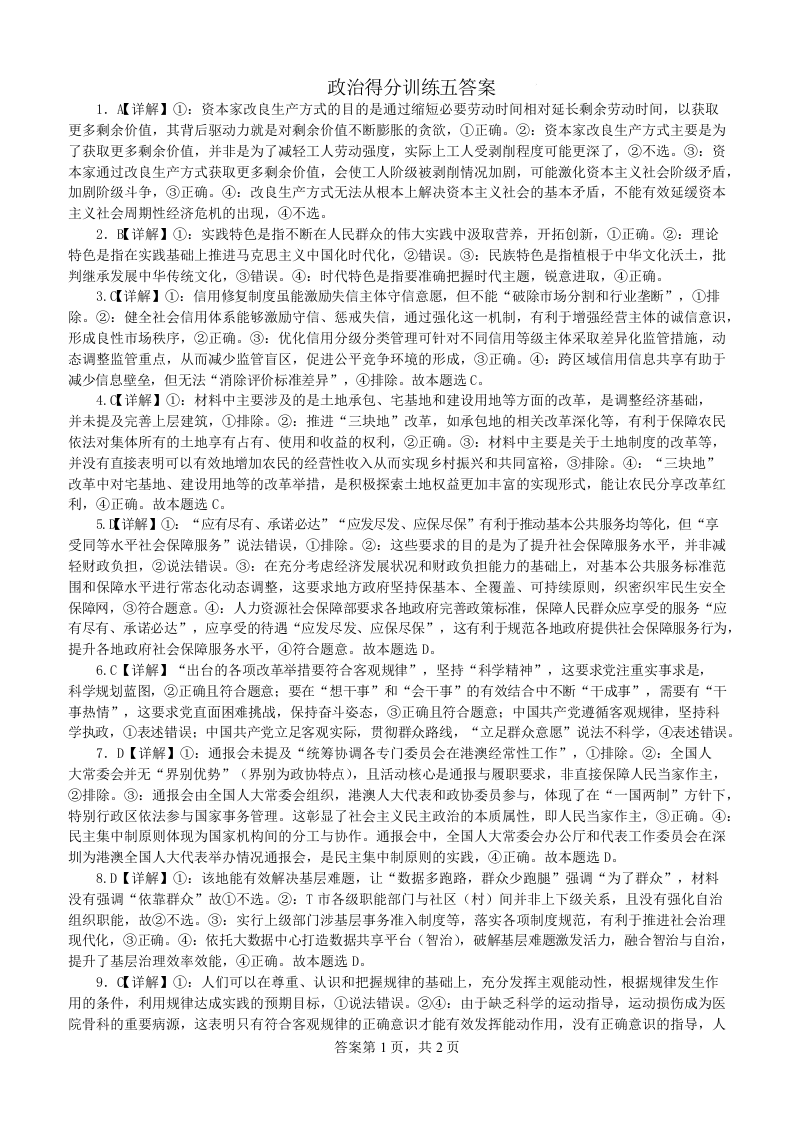 黑龙江省大庆实验中学二部2025届高三得分训练(五)政治答案.docx