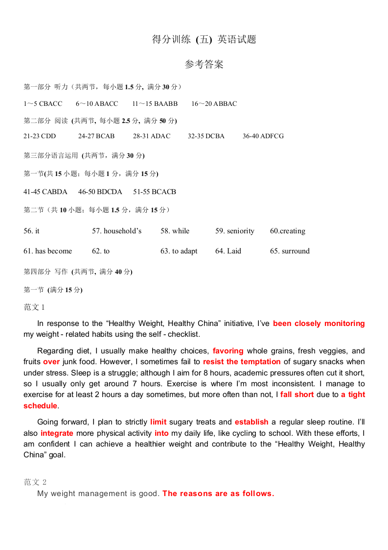 黑龙江省大庆实验中学二部2025届高三得分训练(五)英语答案.docx