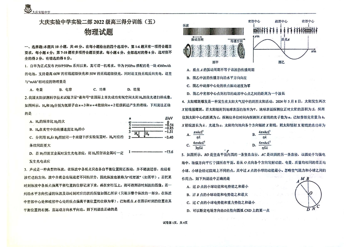 黑龙江省大庆实验中学二部2025届高三得分训练(五)物理.pdf