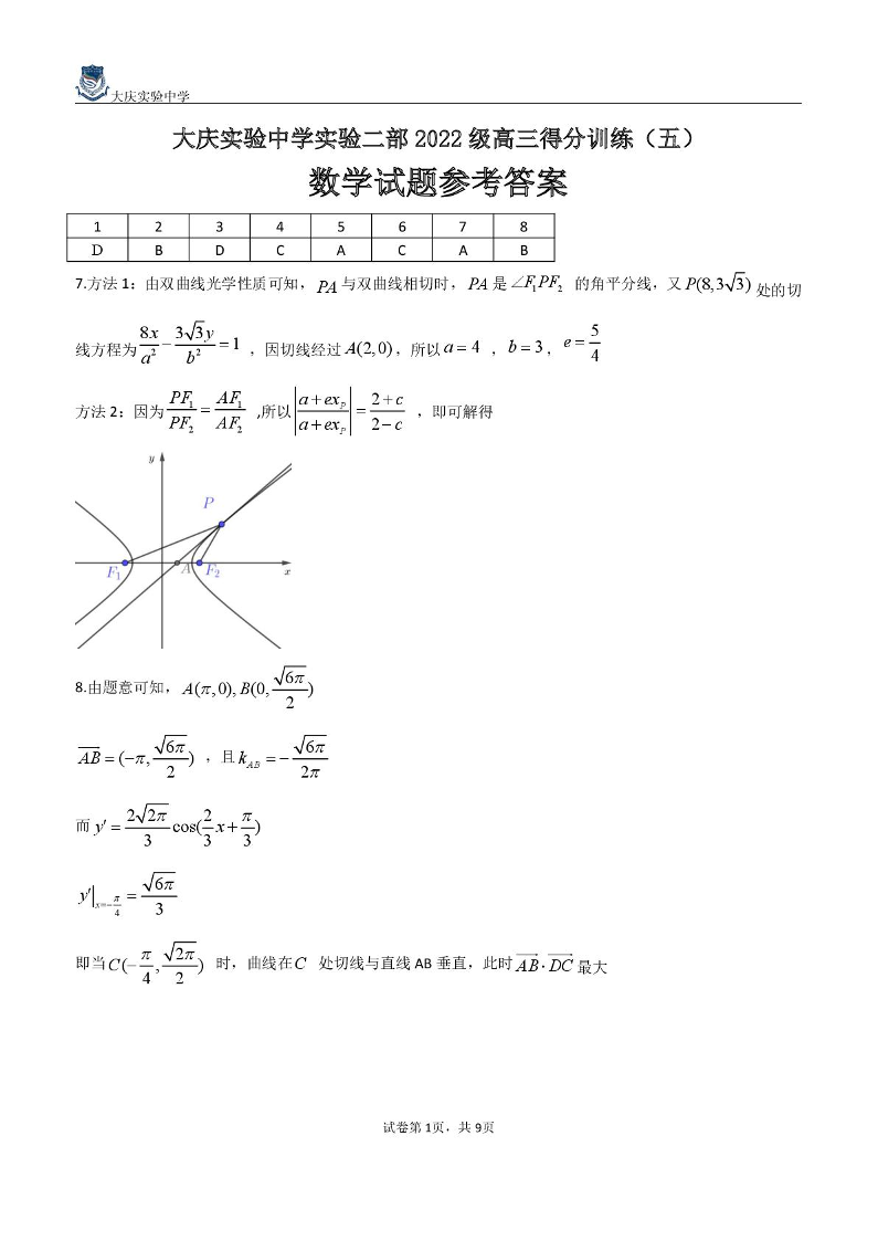 黑龙江省大庆实验中学二部2025届高三得分训练(五)数学答案.pdf