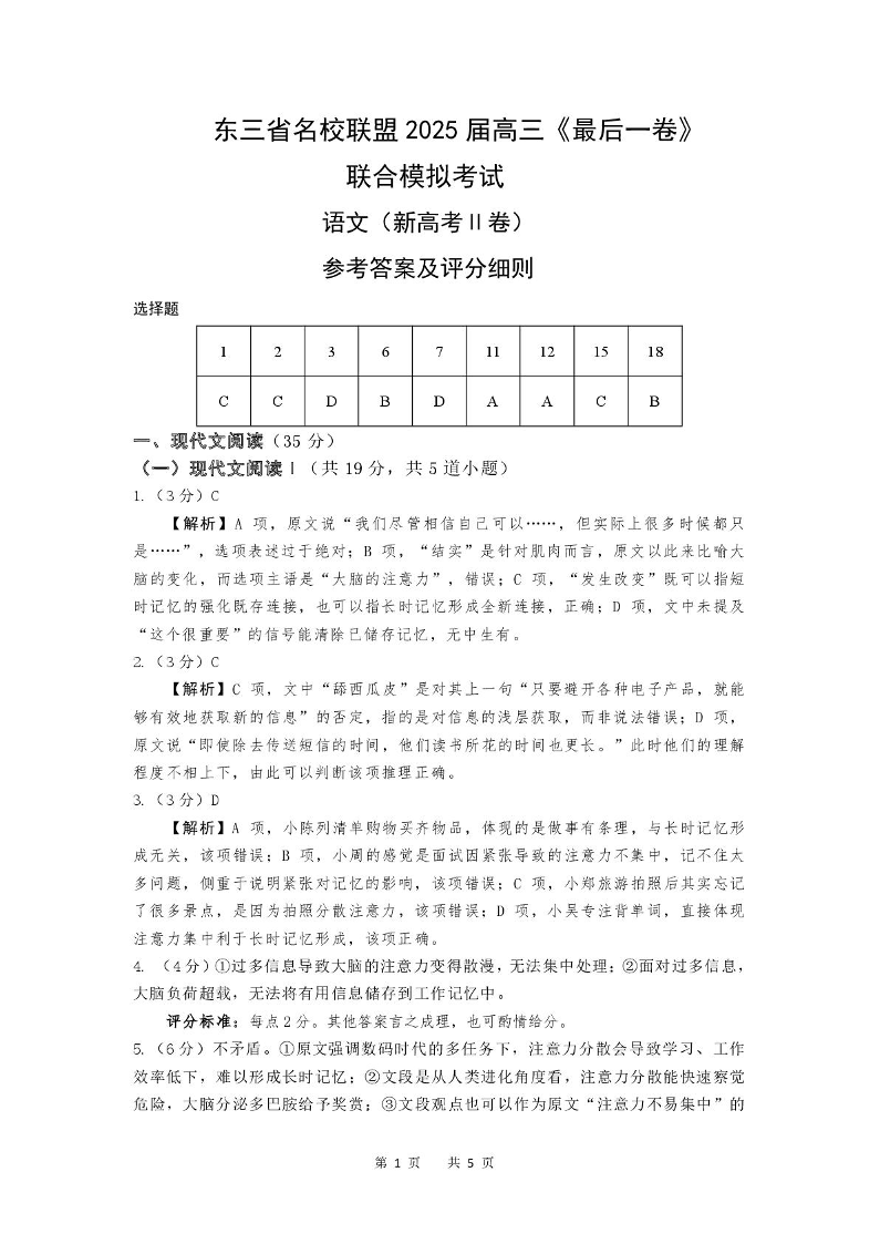 东三省名校联盟 2025届高三《最后一卷》联合模拟考试 语文答案.pdf