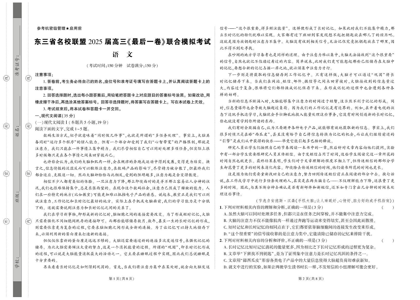 东三省名校联盟 2025届高三《最后一卷》联合模拟考试 语文.pdf