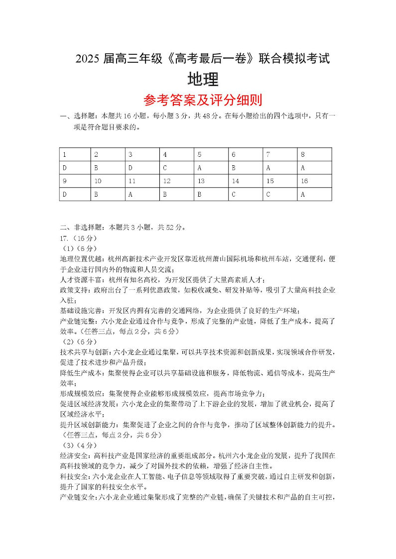 东三省名校联盟 2025届高三《最后一卷》联合模拟考试 地理答案.pdf