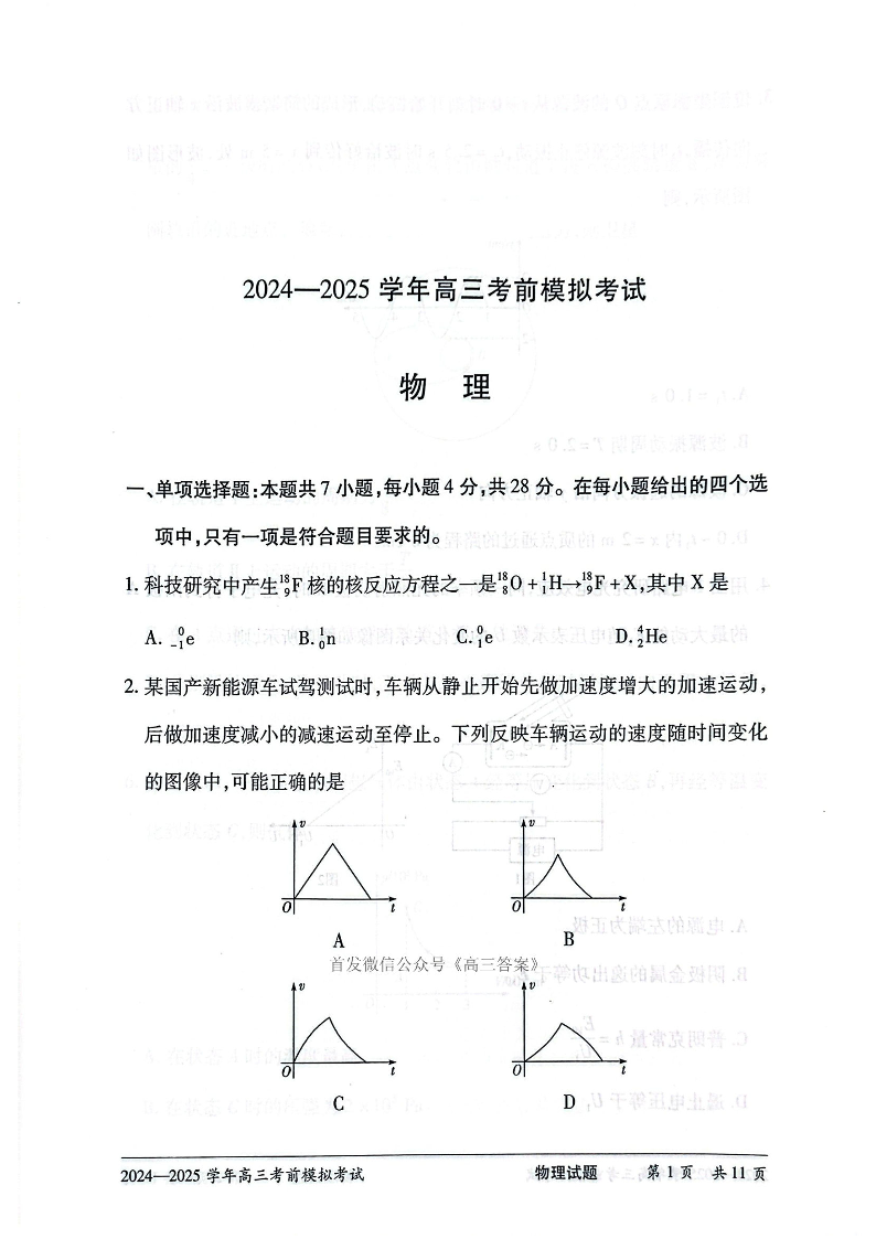 天一大联考2024-2025学年高三考前模拟考试 物理.pdf