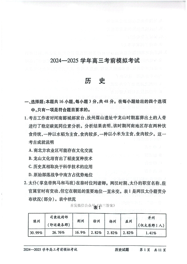 天一大联考2024-2025学年高三考前模拟考试 历史.pdf