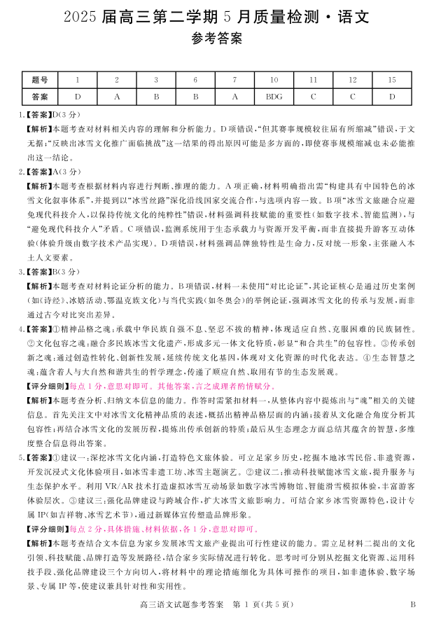 华师联盟2025届高三第二学期5月质量检测 语文答案.pdf