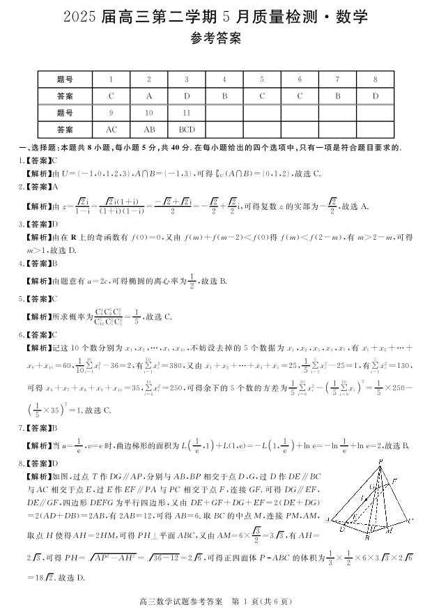 华师联盟2025届高三第二学期5月质量检测 数学答案.pdf