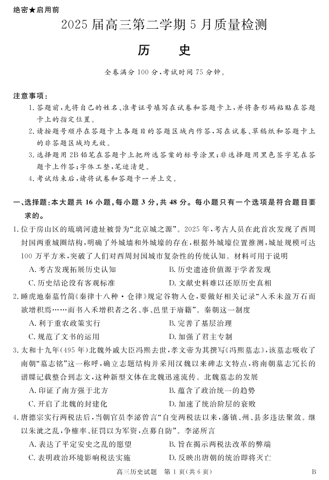 华师联盟2025届高三第二学期5月质量检测 历史.pdf
