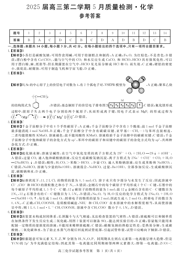 华师联盟2025届高三第二学期5月质量检测 化学答案.pdf