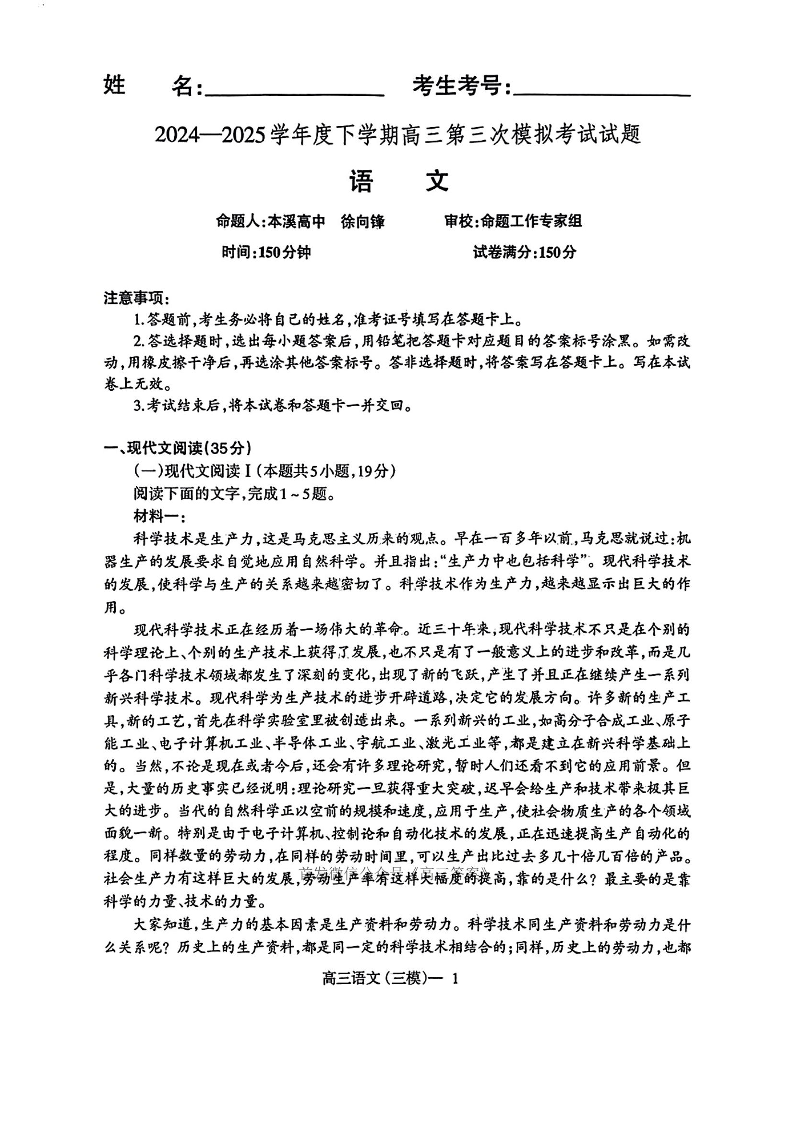辽宁省协作校2024-2025学年度下学期高三第三次模拟考试 语文.pdf