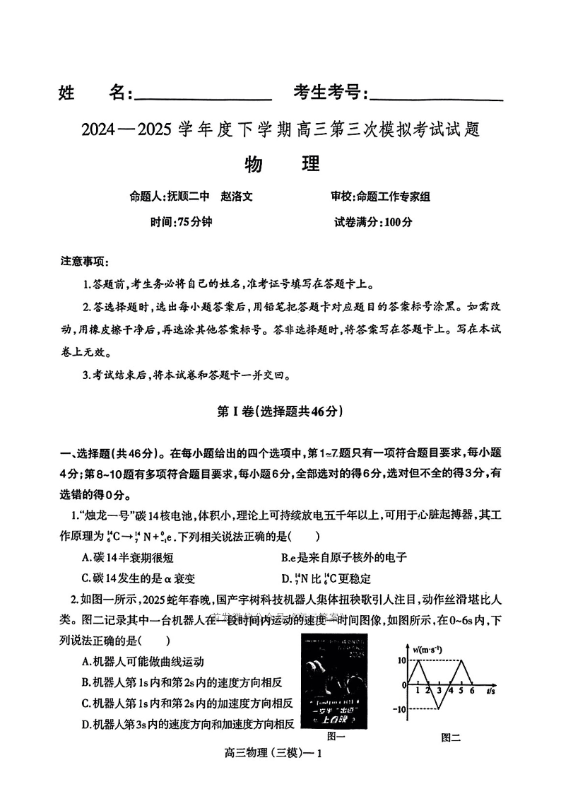 辽宁省协作校2024-2025学年度下学期高三第三次模拟考试 物理.pdf