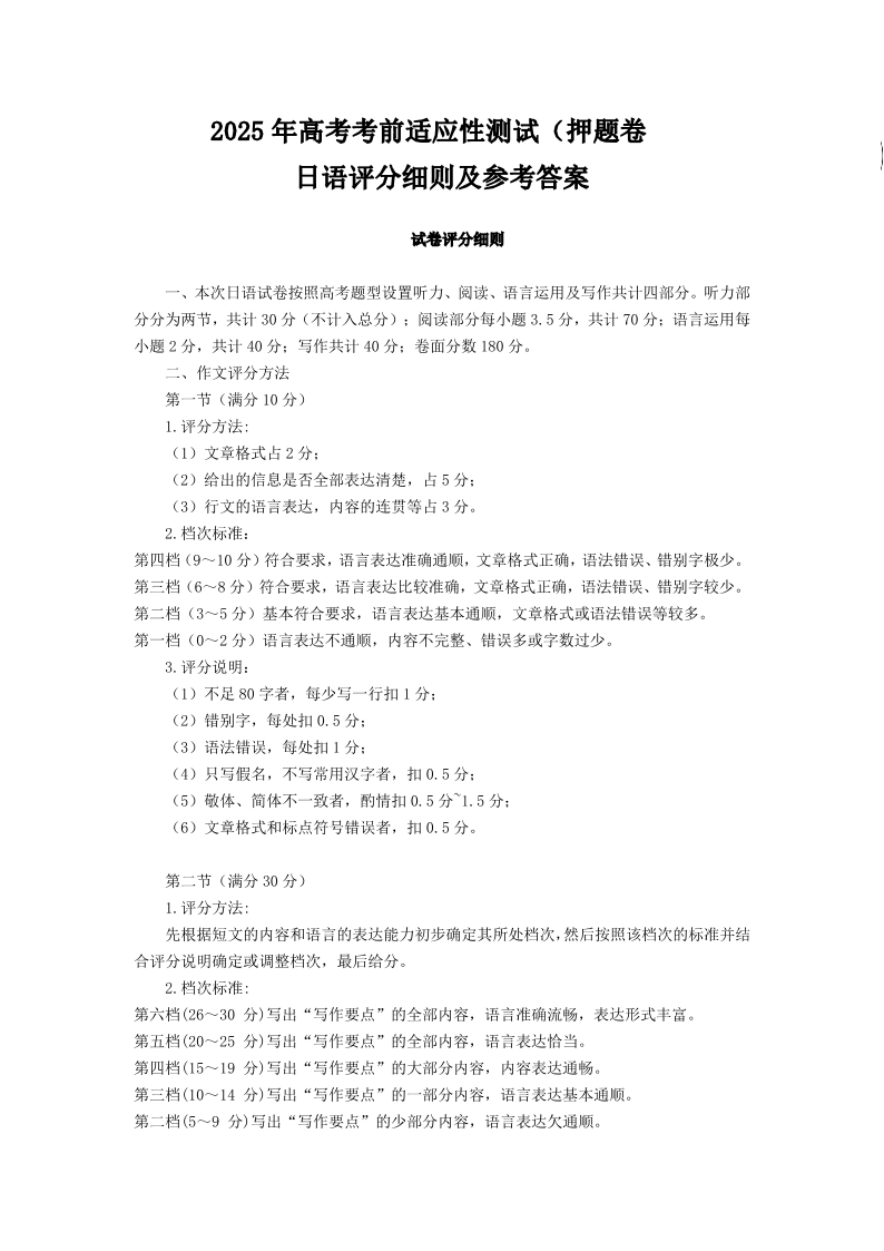 山西省2025年5月高考考前适应性测试 日语答案.pdf