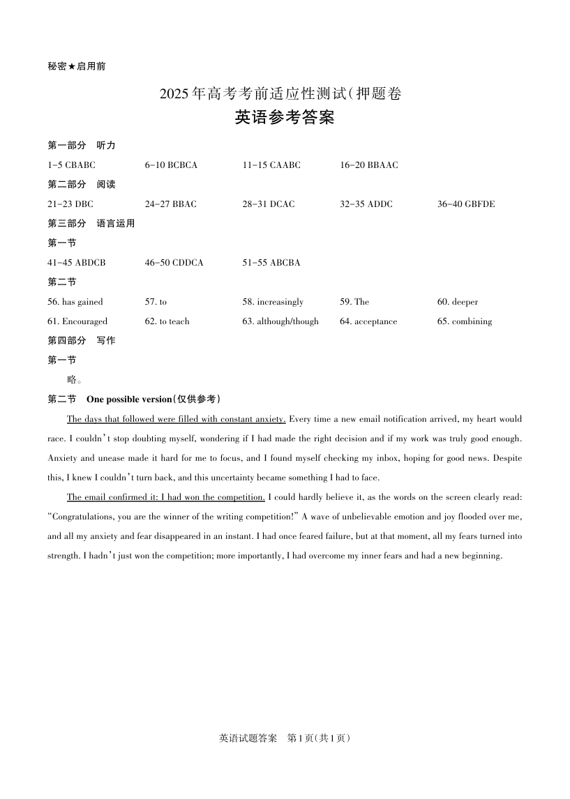 山西省2025年5月高考考前适应性测试 英语答案.pdf