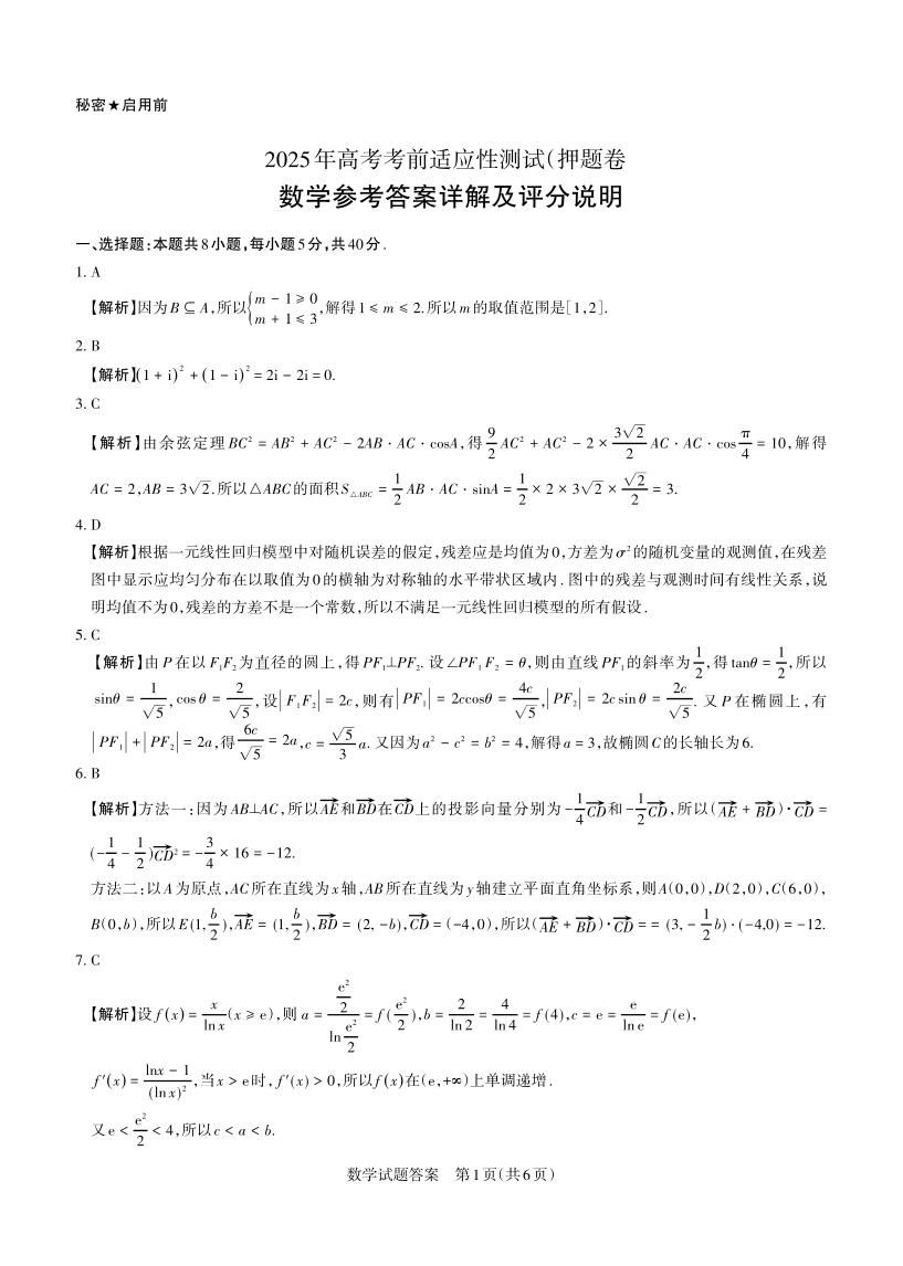 山西省2025年5月高考考前适应性测试 数学答案.pdf