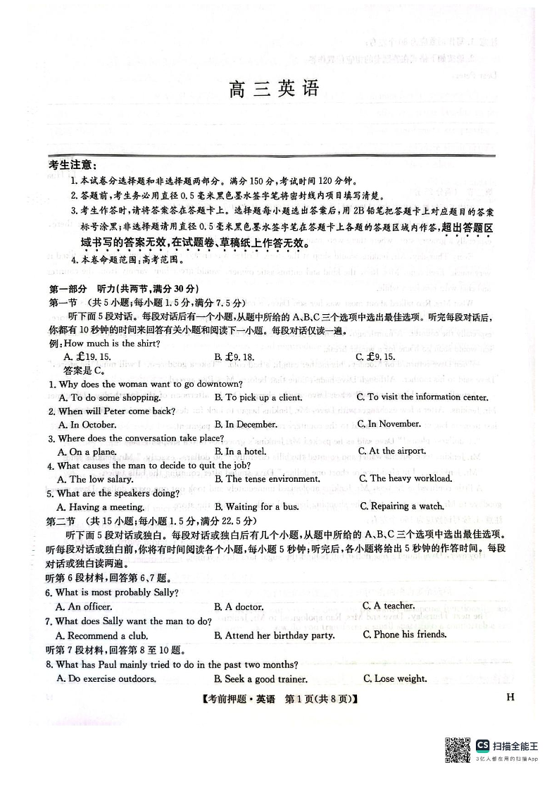 九师联盟2025届高三下学期5月考前押题 英语试题(含答案).pdf