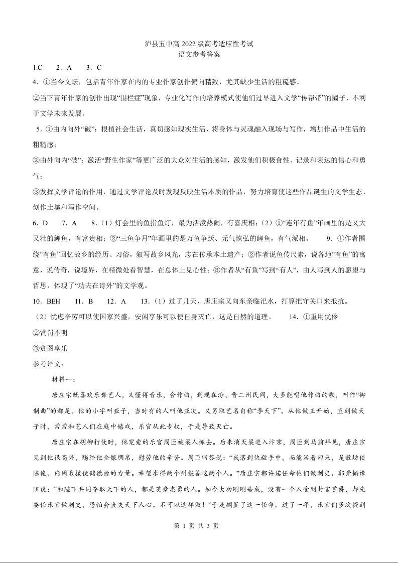 泸县五中高2022级高考适应性考试 语文答案.docx