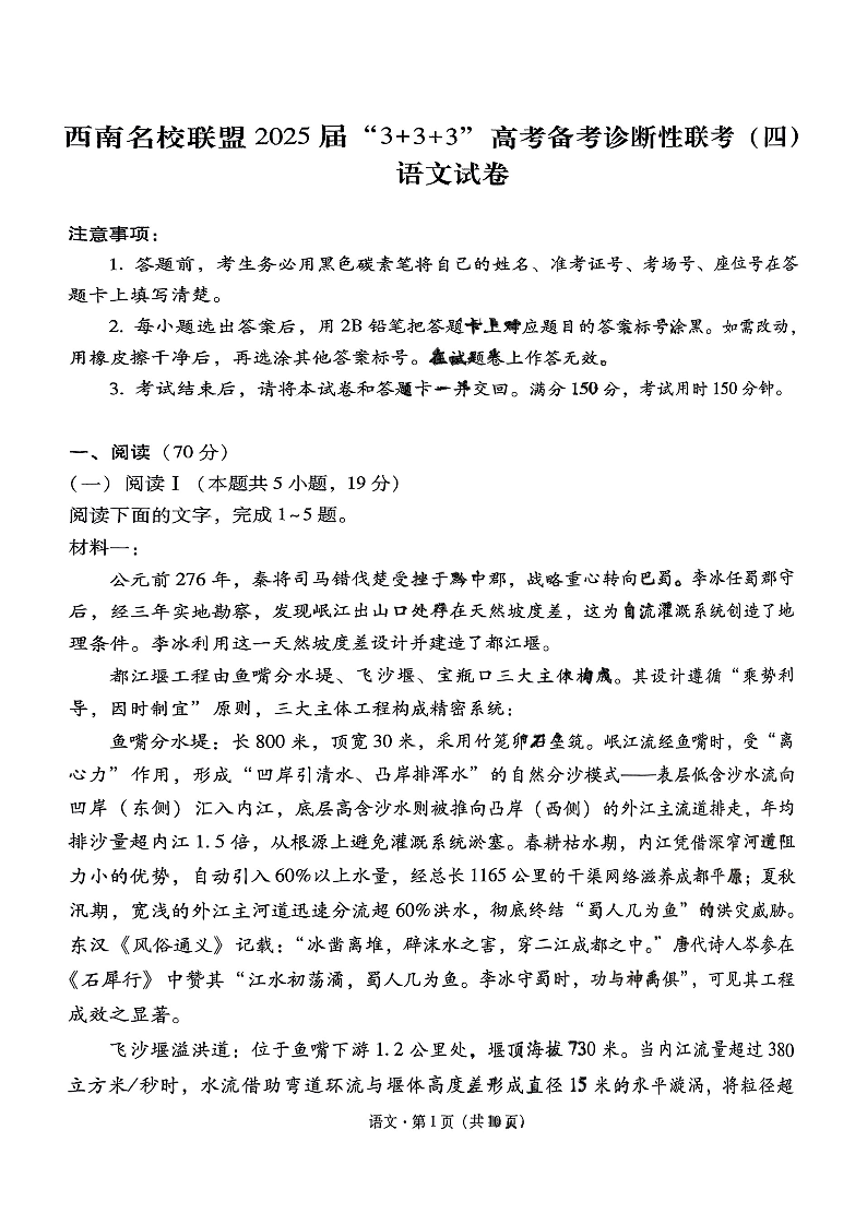 西南名校联盟2025届“3+3+3”高考备考诊断性联考(四)语文(含答案).pdf