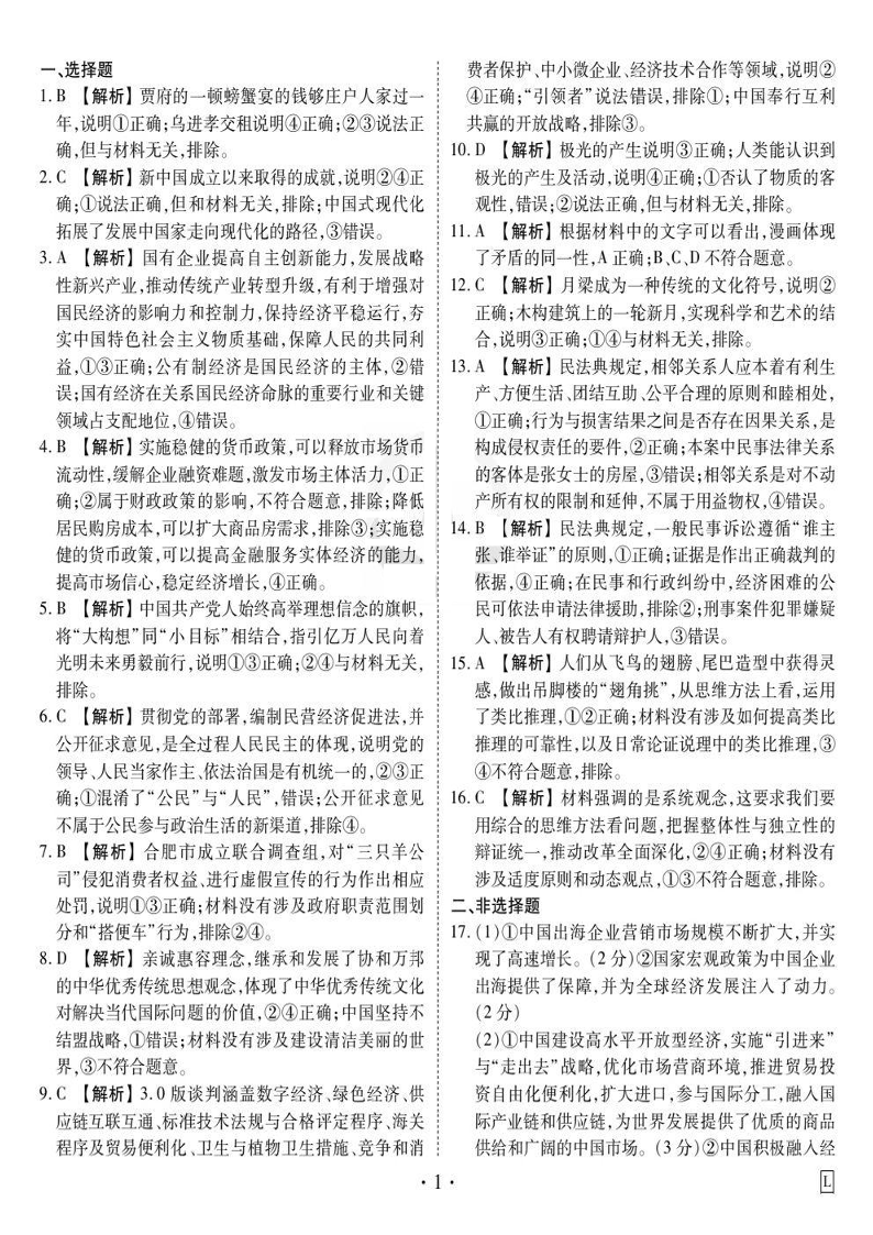 衡水金卷·先享题·信息卷2025届高三模拟试题(五)政治答案.pdf