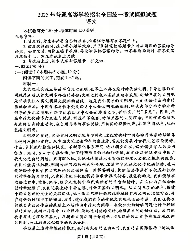 衡水金卷·先享题·信息卷2025届高三模拟试题(五)语文.pdf