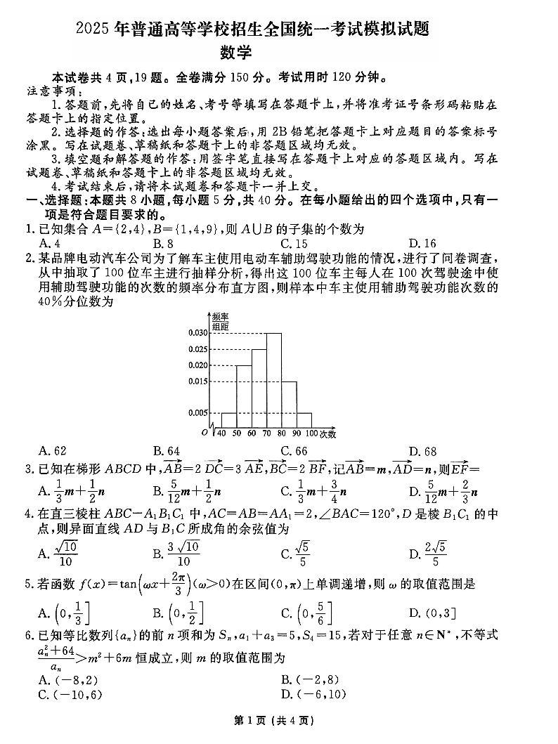 衡水金卷·先享题·信息卷2025届高三模拟试题(五)数学.pdf