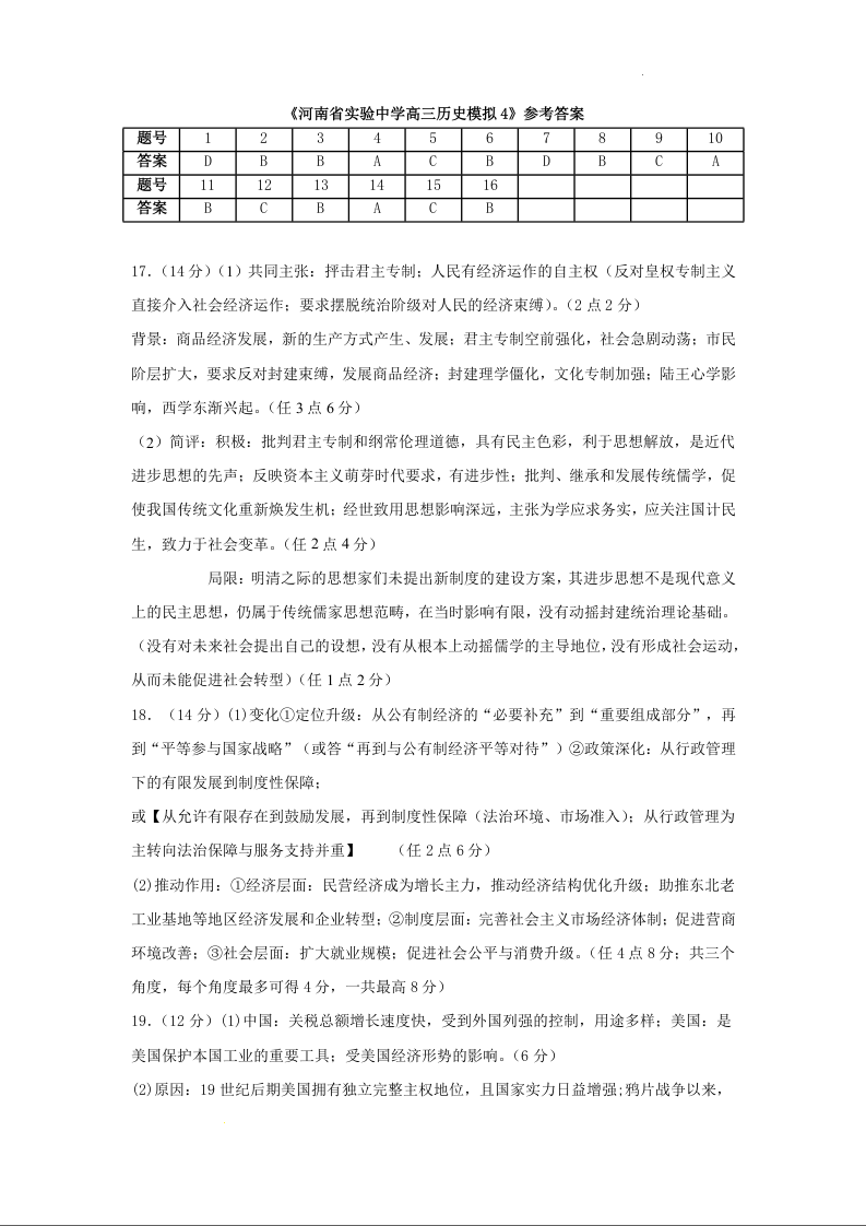 河南省实验中学2024-2025学年高三下学期第四次模拟考试 历史答案.docx