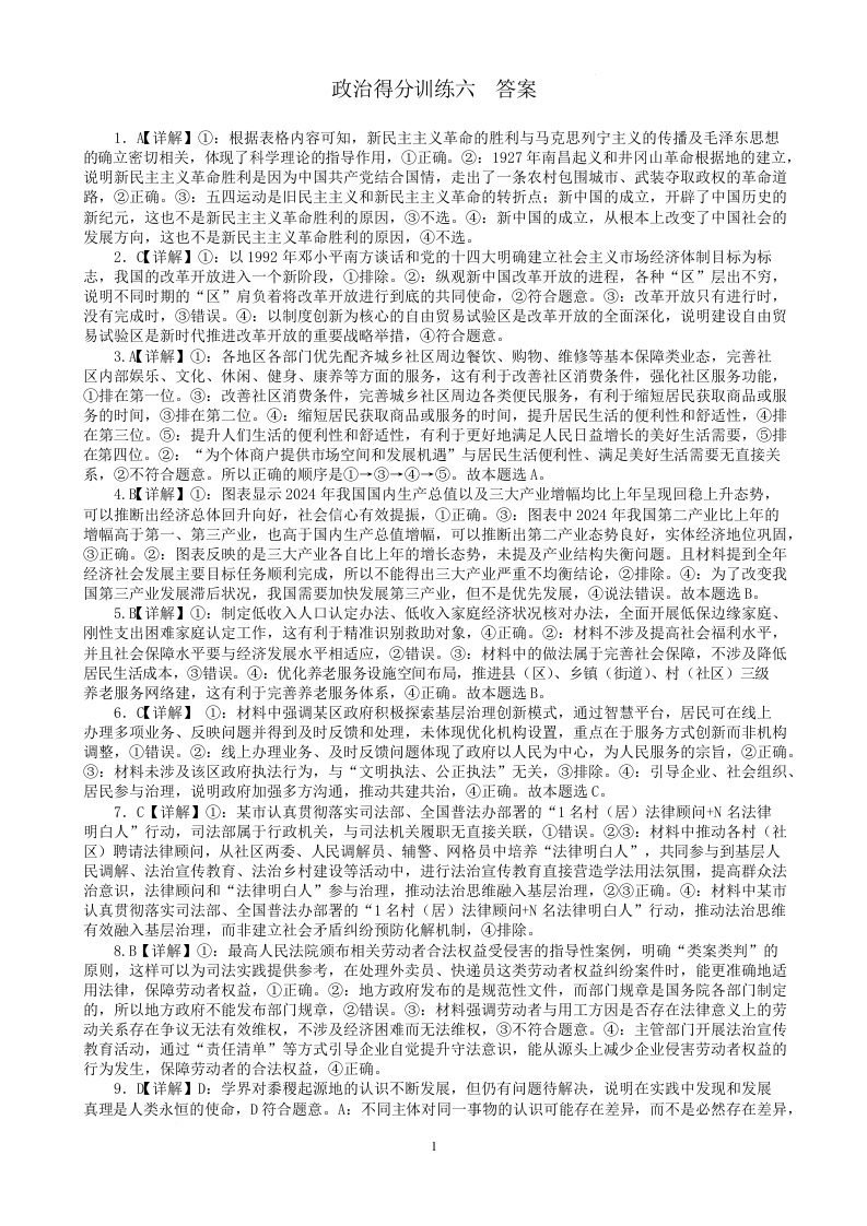 黑龙江省大庆实验中学2025届高三下学期得分训练(六)政治答案.docx