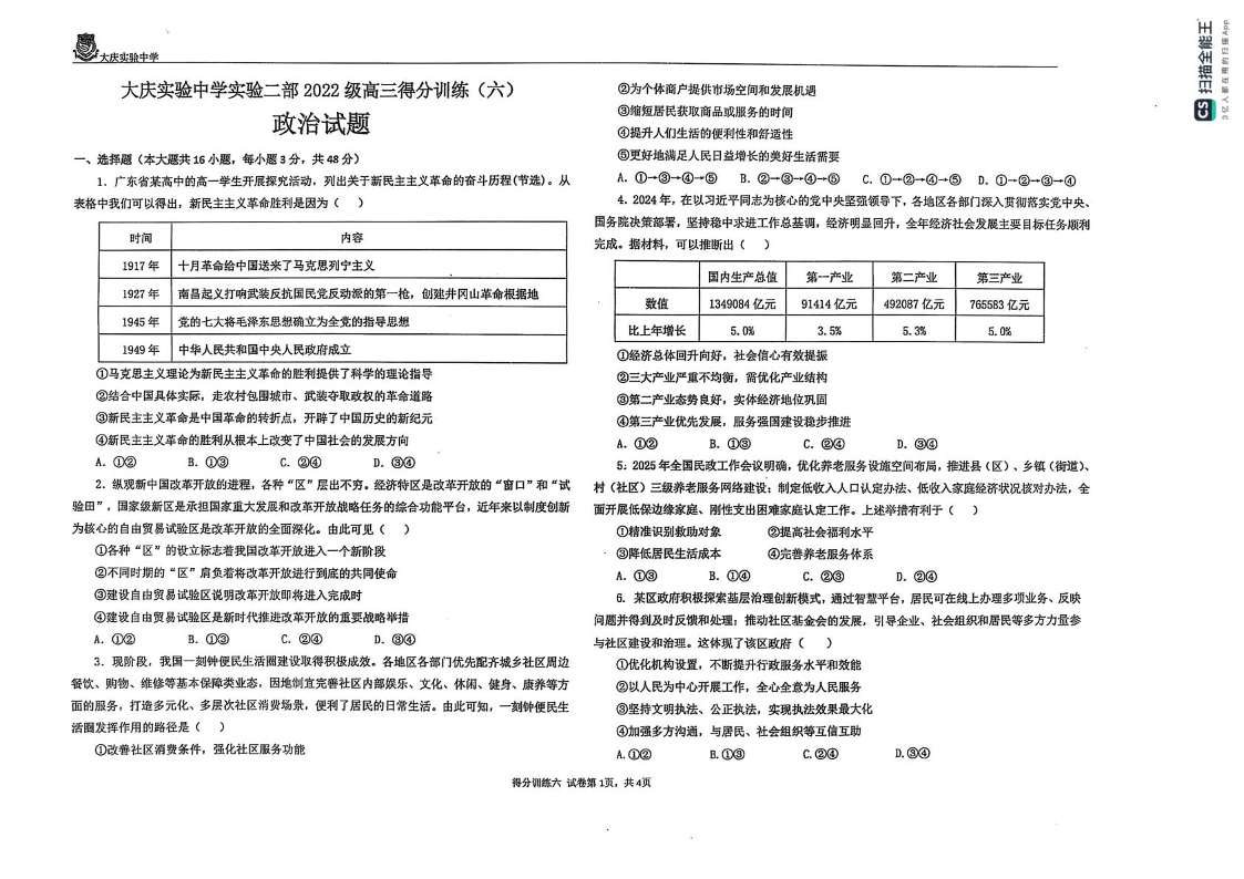 黑龙江省大庆实验中学2025届高三下学期得分训练(六)政治.pdf