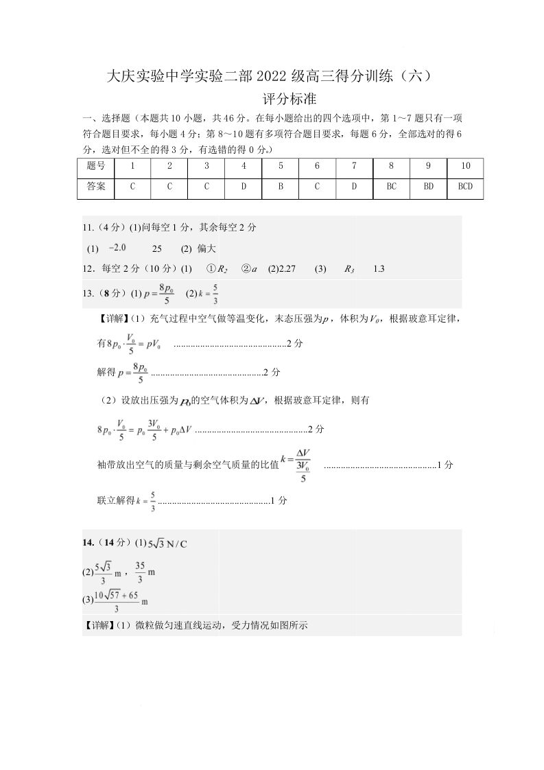 黑龙江省大庆实验中学2025届高三下学期得分训练(六)物理答案.docx