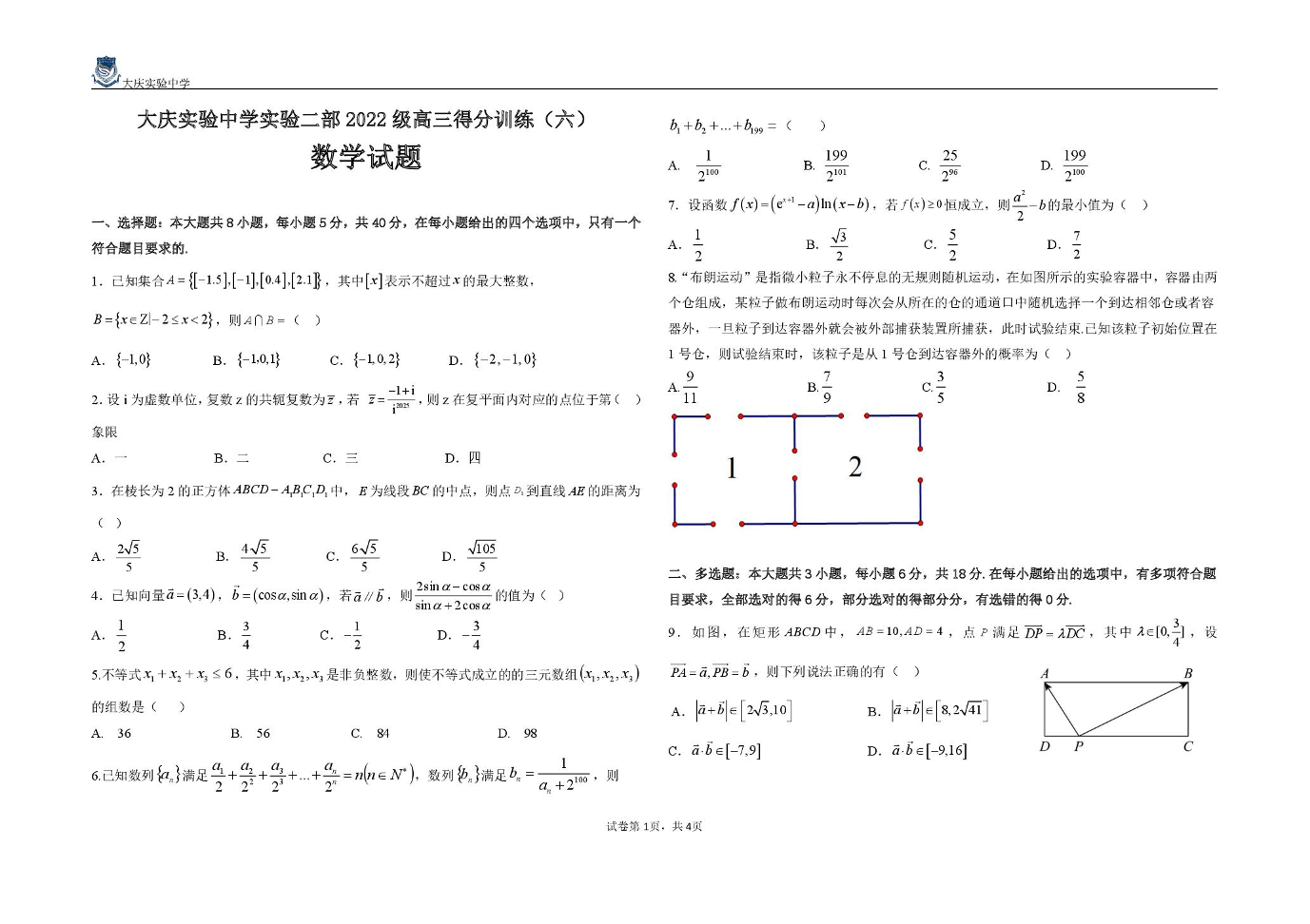 黑龙江省大庆实验中学2025届高三下学期得分训练(六)数学.pdf