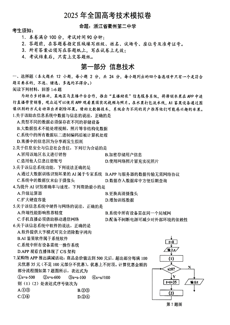 浙江省六校联盟2025届高三5月模拟预测卷 技术试题(含答案).pdf
