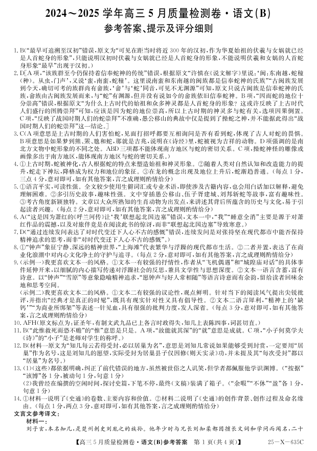 三晋卓越联盟2025届高三5月质量检测卷 语文答案.pdf