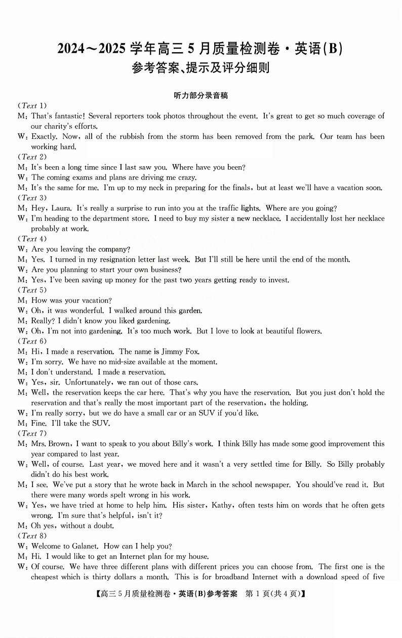 三晋卓越联盟2025届高三5月质量检测卷 英语答案.pdf