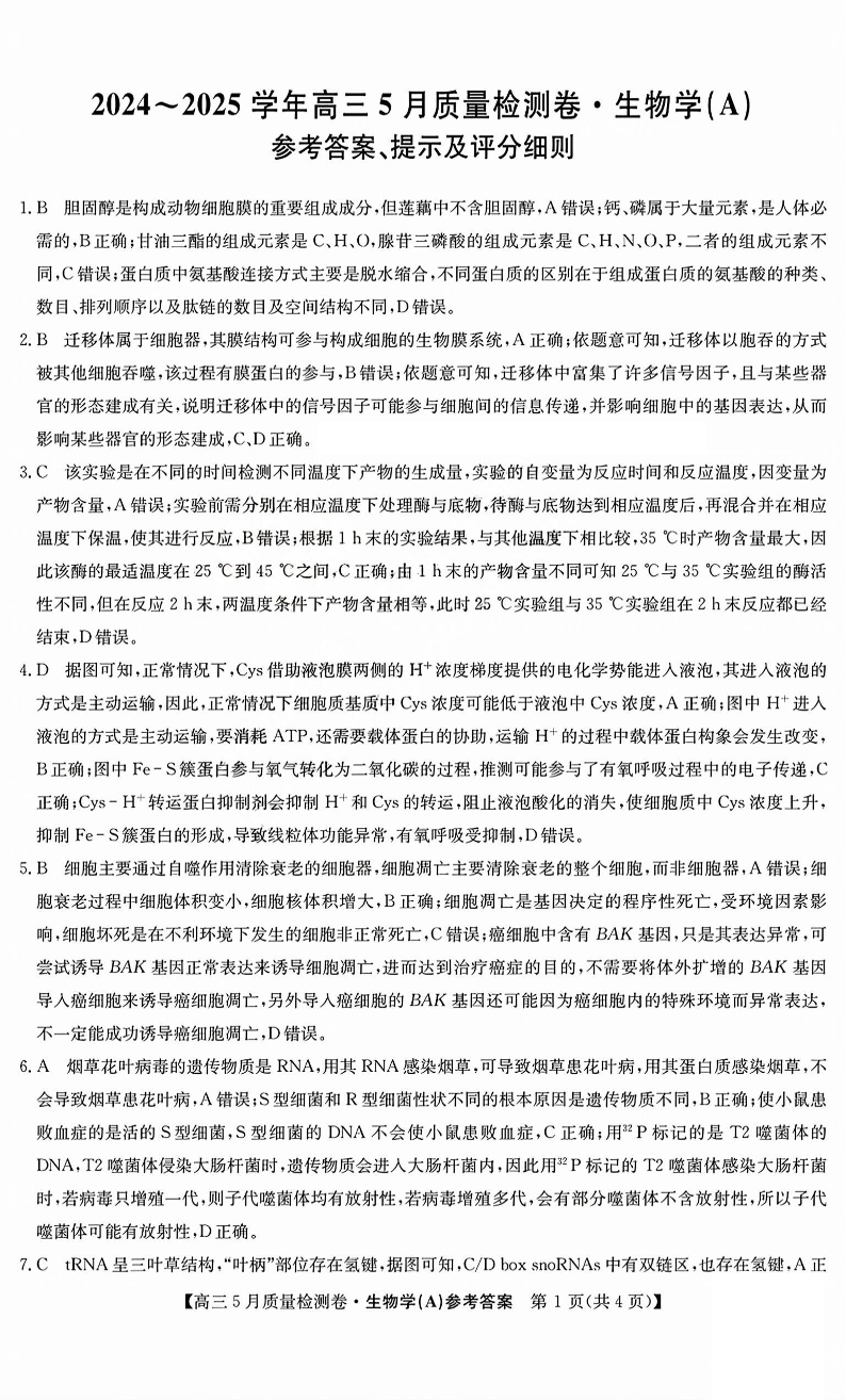 三晋卓越联盟2025届高三5月质量检测卷 生物答案.pdf