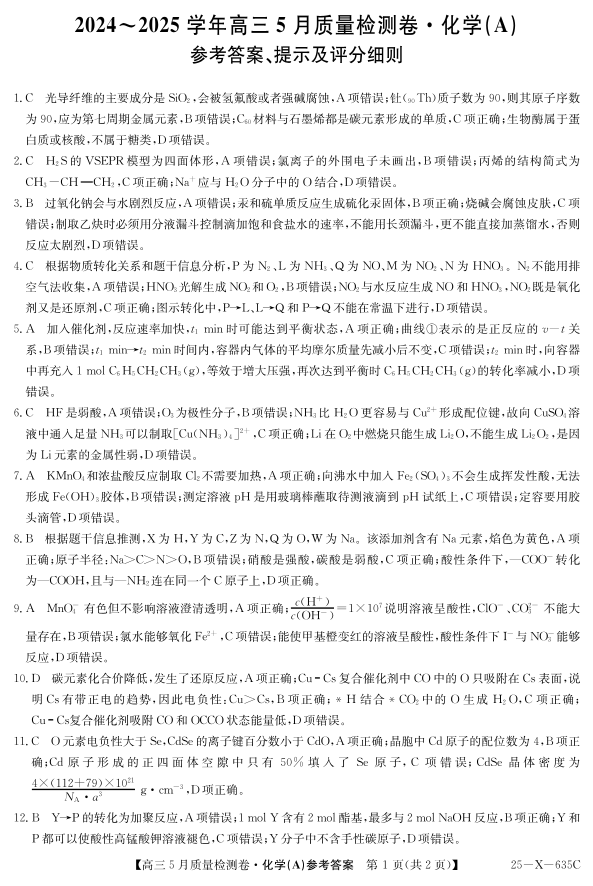 三晋卓越联盟2025届高三5月质量检测卷 化学答案.pdf