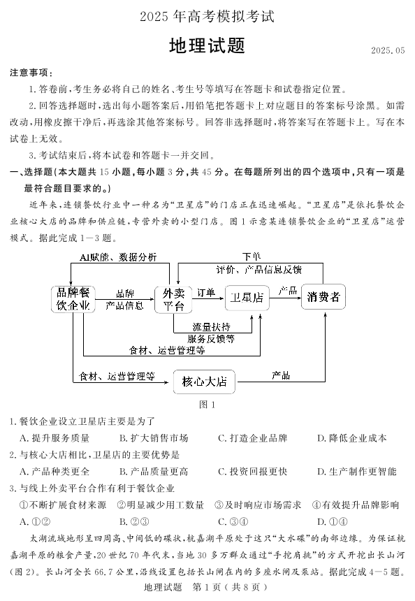 山东省济宁市2025年高考模拟考试 地理.pdf