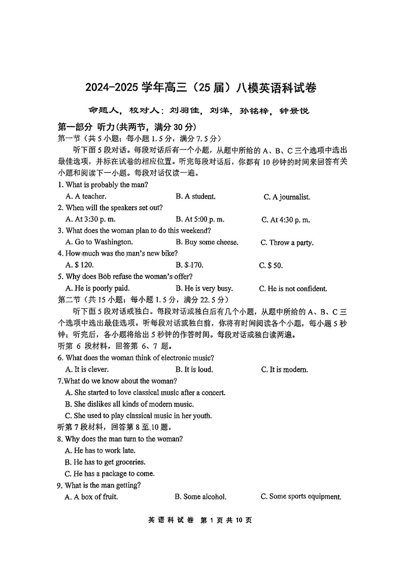 辽宁省鞍山市第一中学2025届高三下学期八模考试 英语.pdf