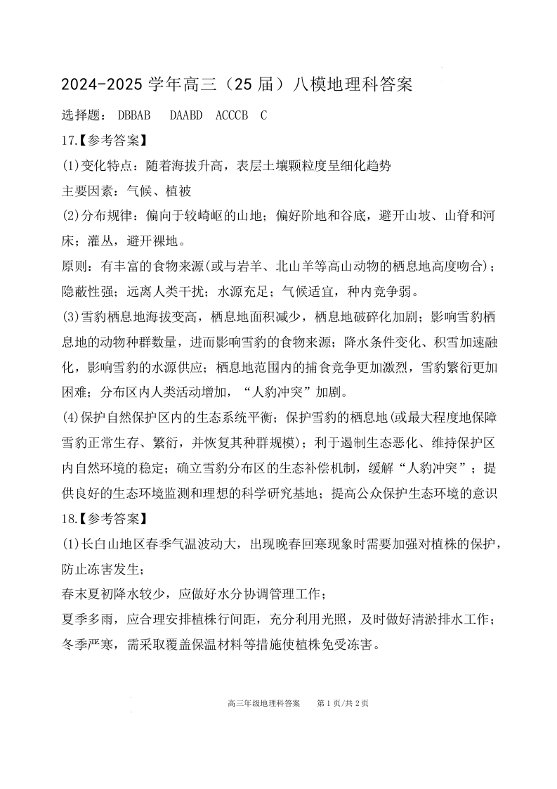 辽宁省鞍山市第一中学2025届高三下学期八模考试 地理答案.docx