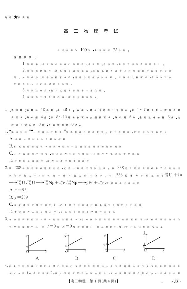 【物理】江西省2025届高三下学期5月百万大联考.pdf
