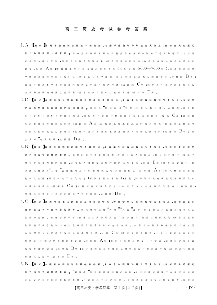 【历史答案】江西省2025届高三下学期5月百万大联考.pdf