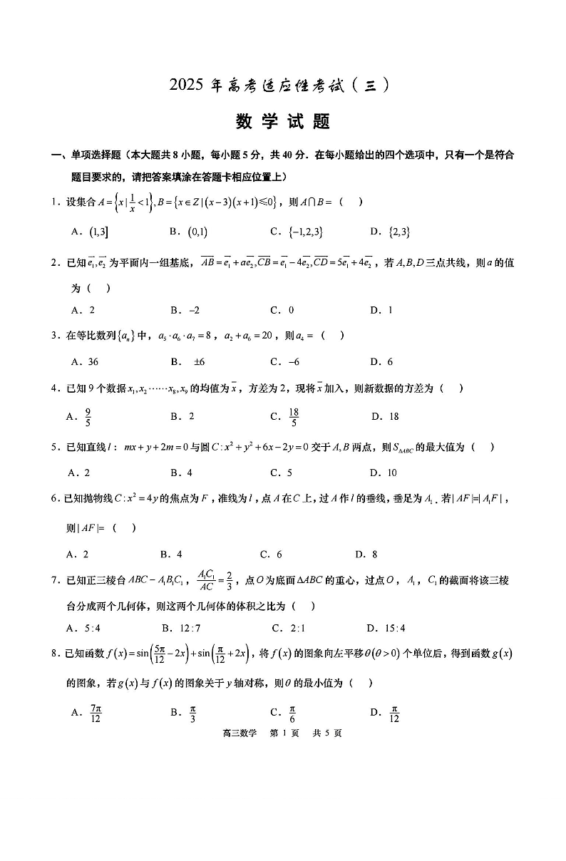 2025届江苏省如皋市高考适应性考试(三)数学(含答案).pdf